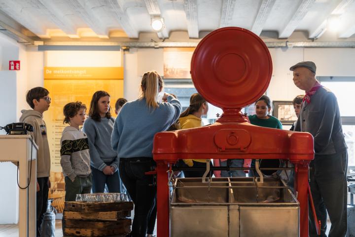 Essentie: De leerlingen maken kennis met de opbouw en de functie van de oude kaasmakerij. Ze ontdekken stapsgewijs welke productiestappen plaatsvinden in het gebouw terwijl ze van ruimte naar ruimte gaan.