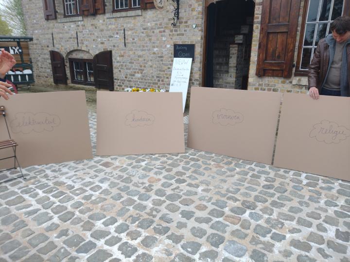 Stap 2: laat de leerlingen nadenken wat ze over het bepaalde thema gezien hebben gedurende de dag. Ze noteren dit op een post-it en plakken het op de flap.
